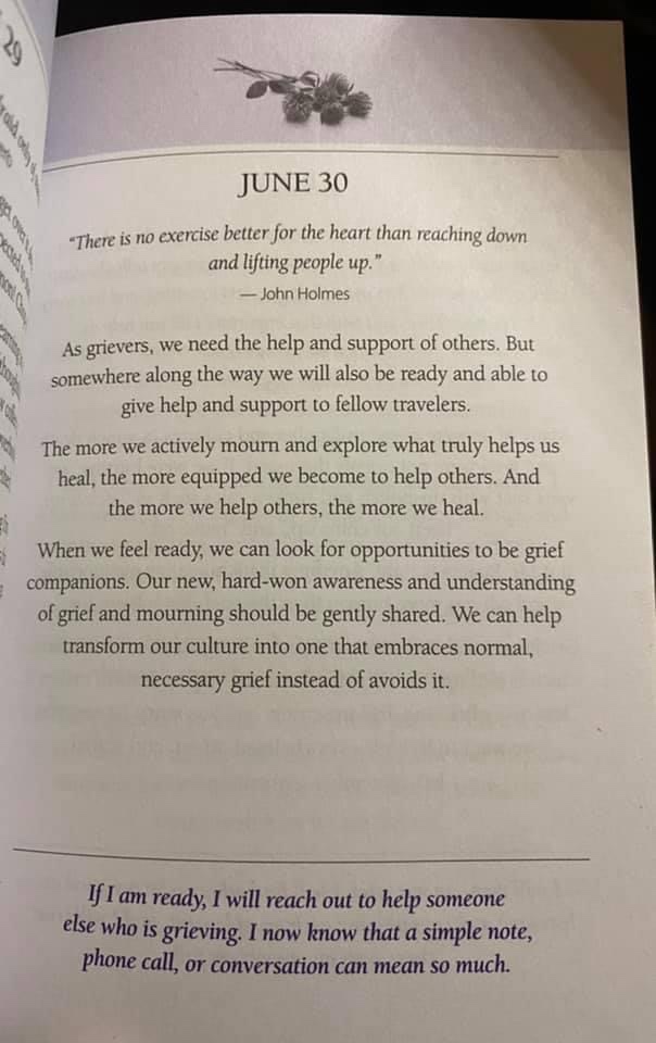 Being open about my grief has been healing (I still have a long way to go). Our culture is uncomfortable with the idea of taking time to actively mourn. We are not comfortable talking about death. If we stuff our feelings down and do not talk about them, write about them, or find some way to push them out, they fester like an untended wound. In my small corner of the world, I want to encourage people to take all of the time they need to mourn, to talk about their person, to share how they feel. I want to be there to listen to them and their stories. I want to be part of a movement to normalize mourning rather than avoiding it.