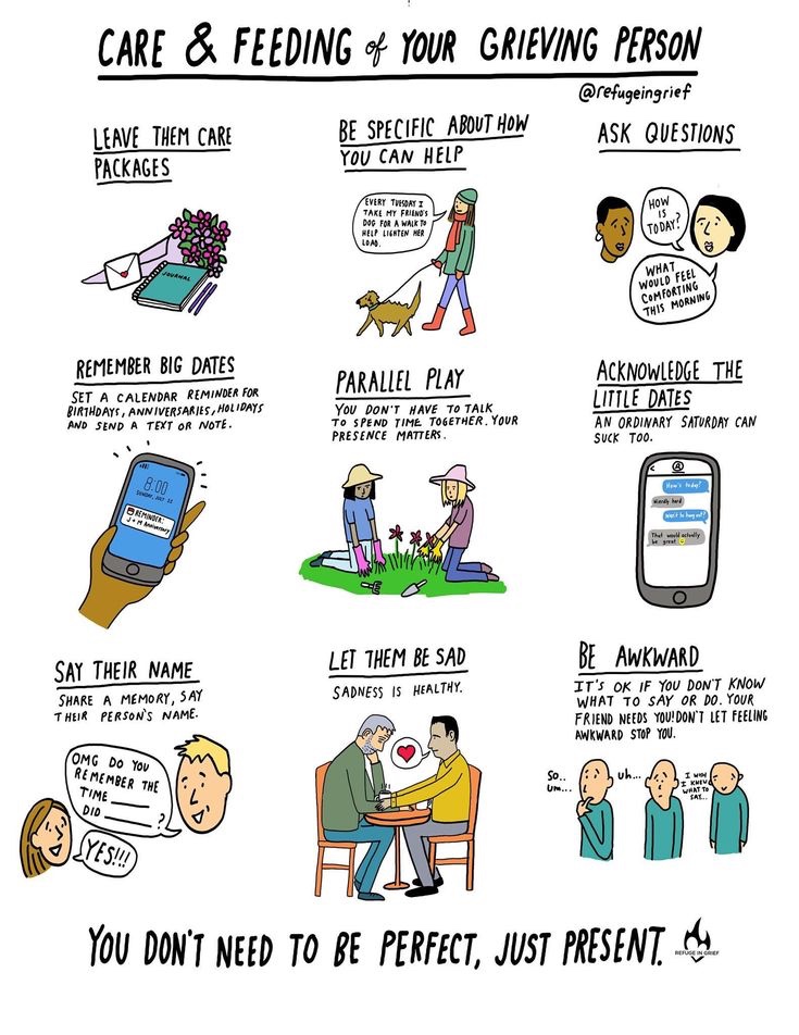 Saying nothing is a terrible thing to do to your grieving person. It makes them feel like no one cares or remembers. It makes them feel invisible. So not only have they lost their person, they’ve also lost their people.